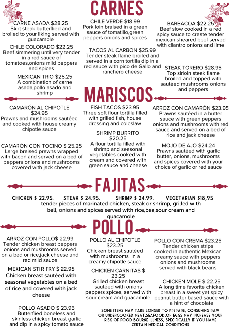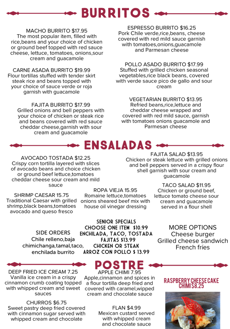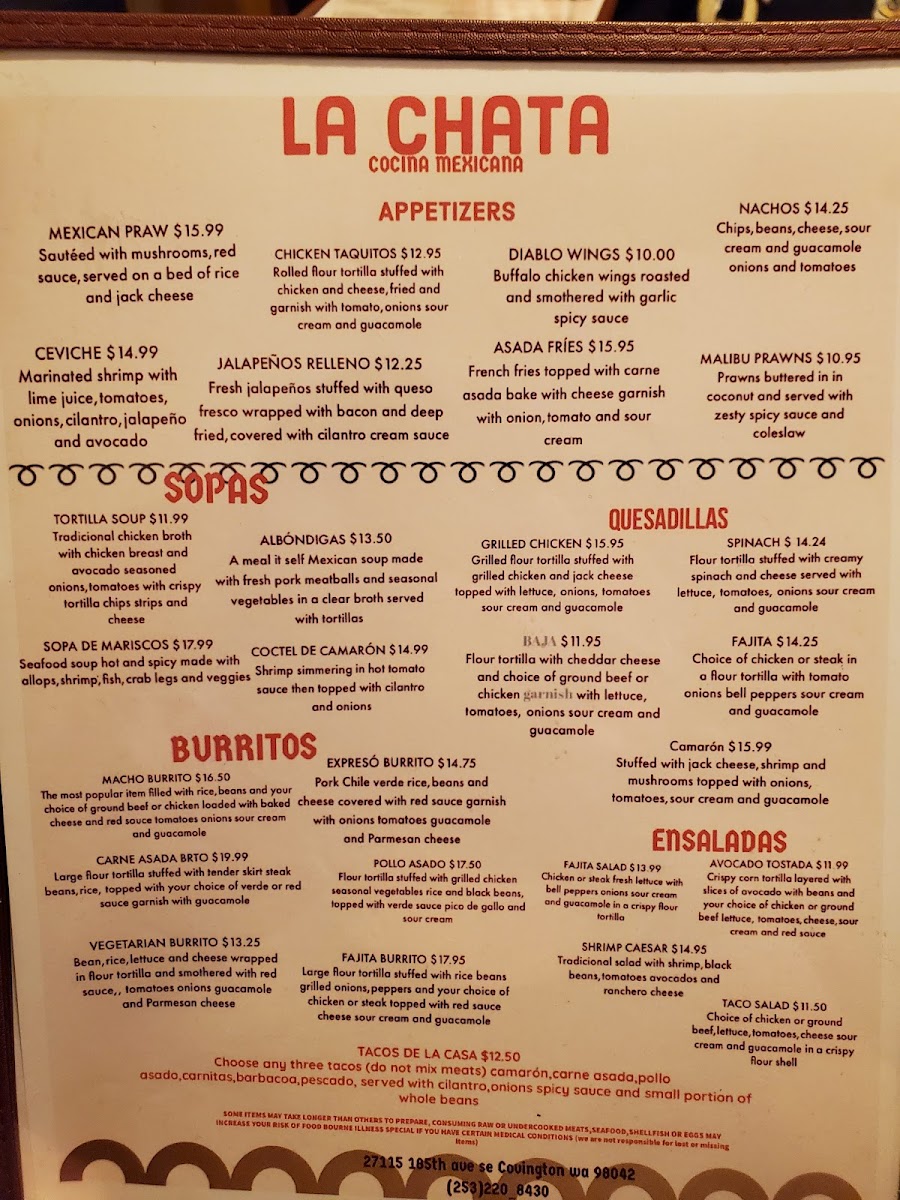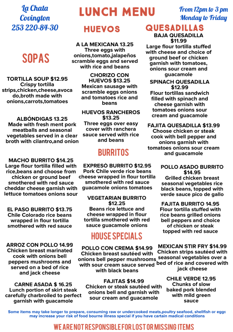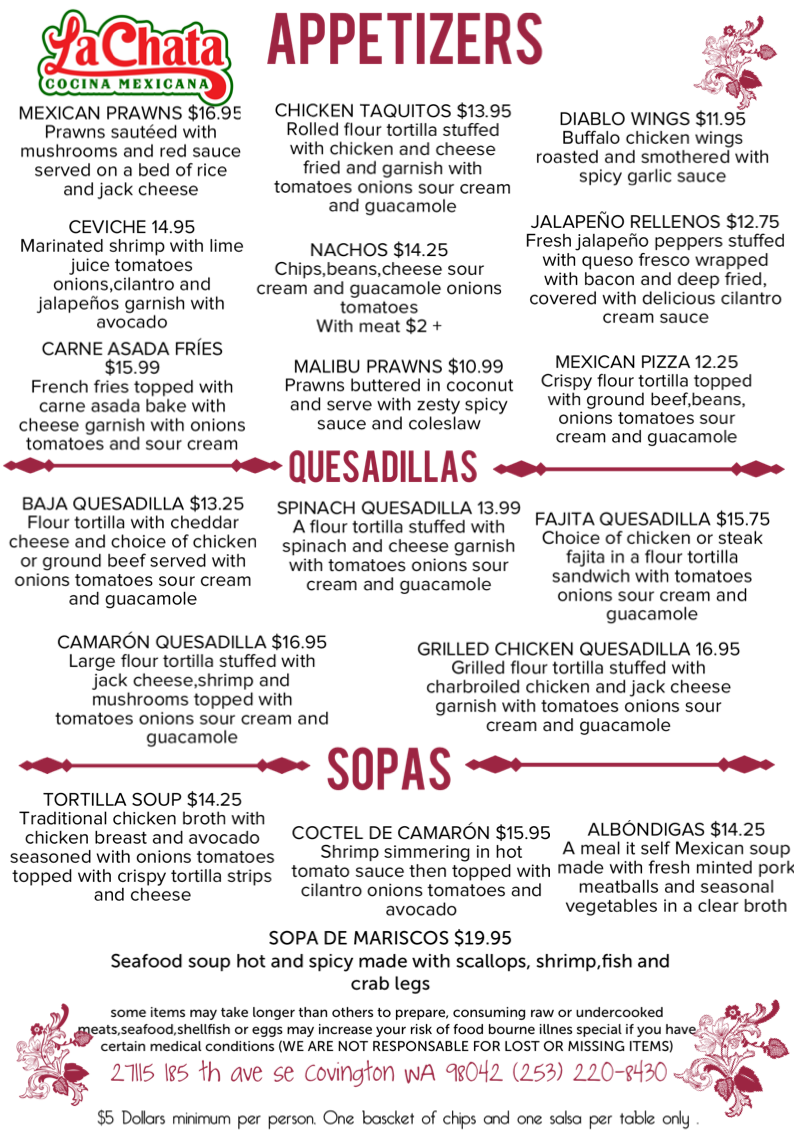 La Chata Cocina Mexicana Menu